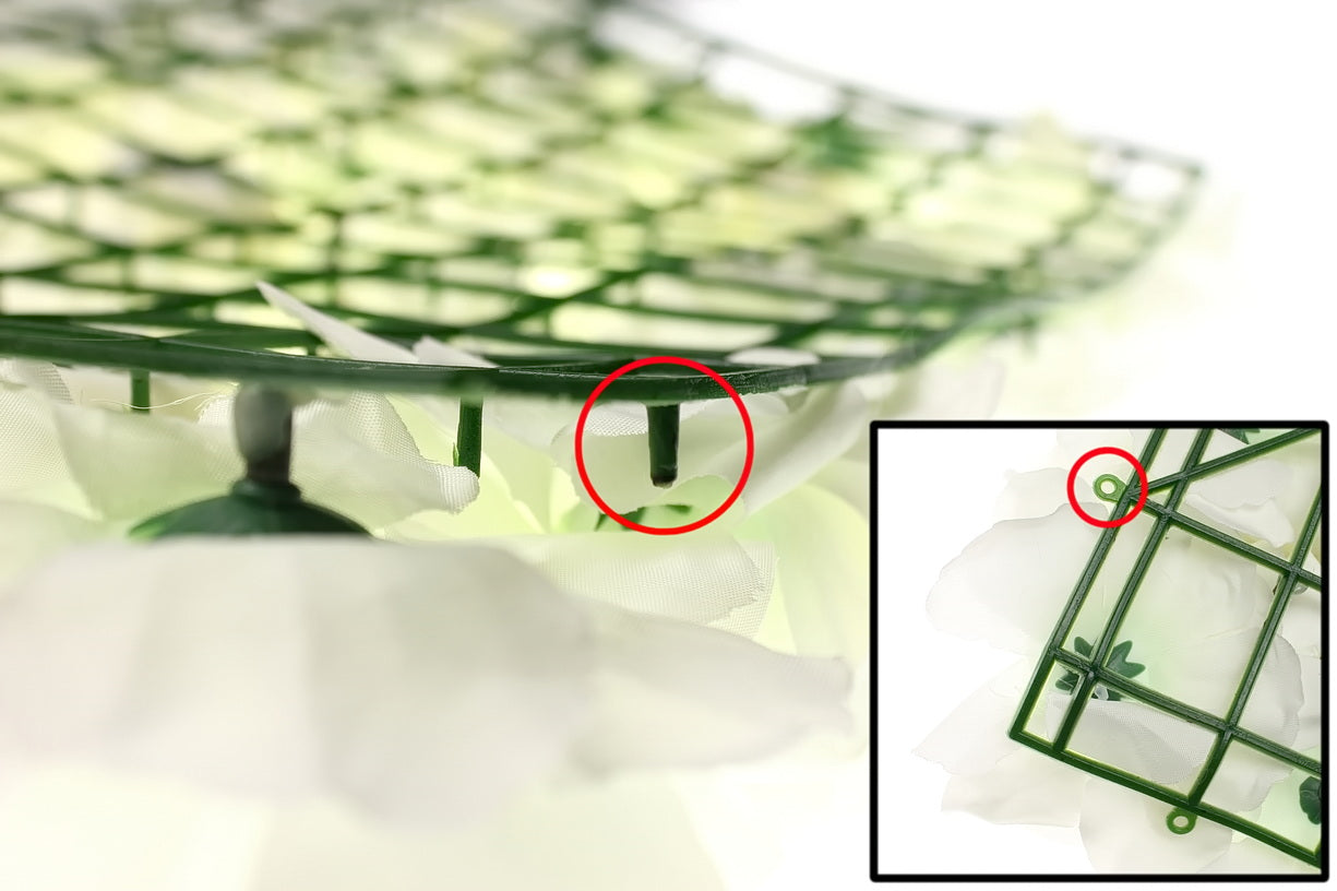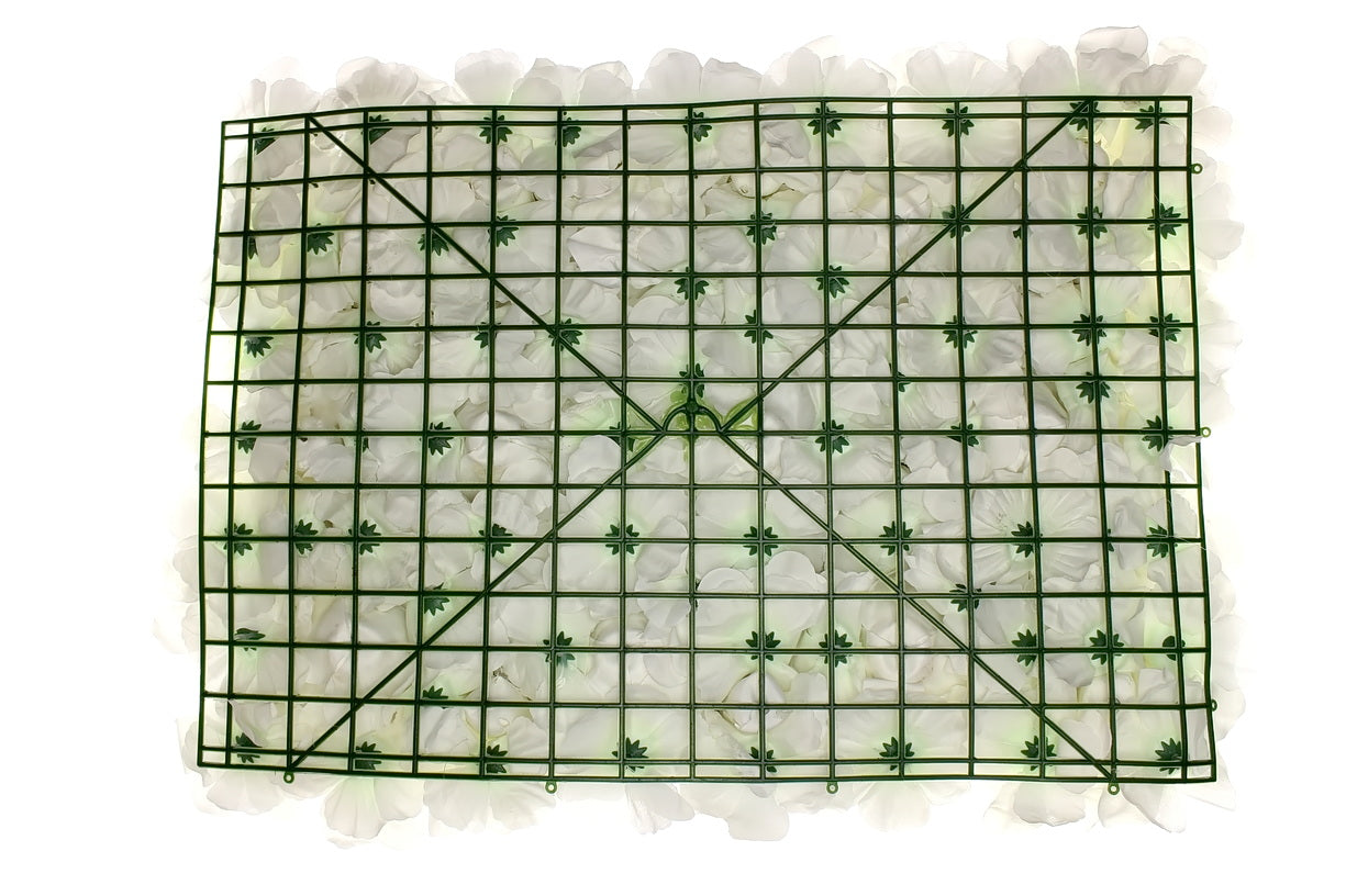 Wunderschöne Textilrosen und Hortensien auf Kunstoffgitter zum Verkleiden von Wänden, Säulen oder Ähnlichem.