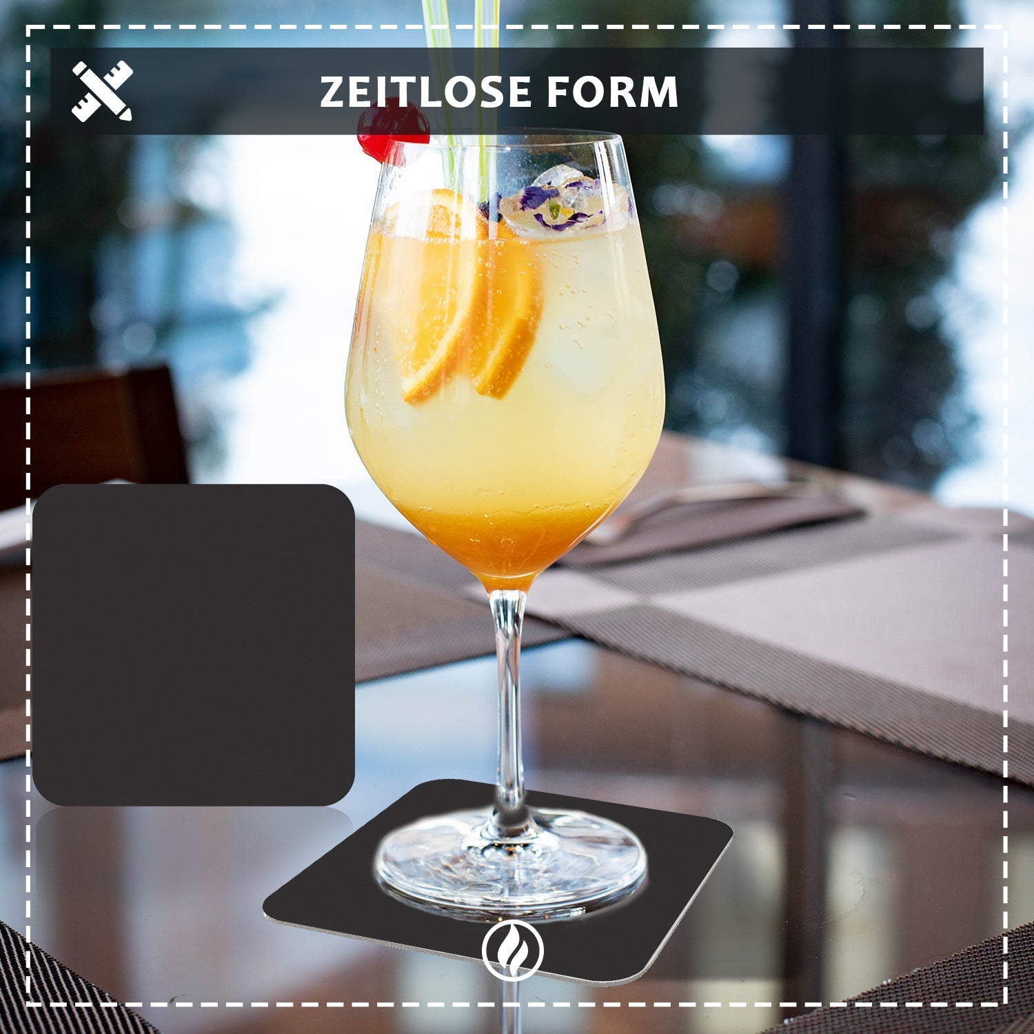 Bringen Sie mit diesen schwarzen, quadratischen Untersetzern einen Hauch von urbaner Eleganz auf Ihren Tisch – ob zur Hochzeit, Party, im Home-Bar-Setting oder als stilvolles Barzubehör. Sichern Sie sich langlebige, vielseitige, puristisch gestaltete Bierdeckel, die modernen Ansprüchen und Trends der Gastronomie entsprechen. Auch als universelle Getränkeuntersetzer, Glasuntersetzer, Bierdeckel blanko und nachhaltige Tischuntersetzer einsetzbar – ideal für zeitgemäße, minimalistische Deko, Events oder für designaffine Privatnutzer.