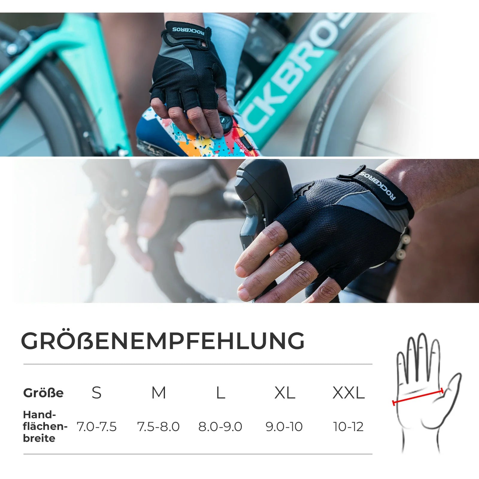 Fahrradhandschuhe Sommer, Atmungsaktive Halbfinger Handschuhe mit SBR Polsterung, rutschfest & Stoßdämpfend