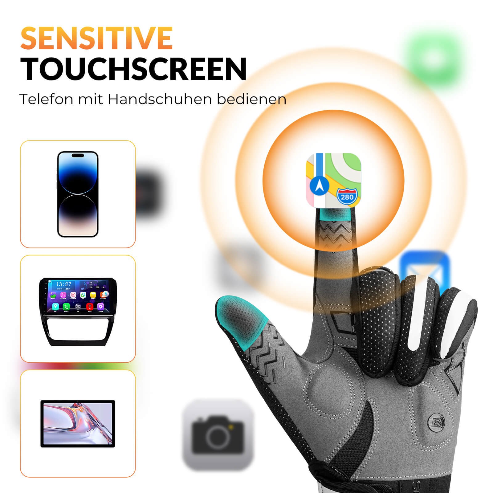 Bleiben Sie verbunden, ohne die Handschuhe auszuziehen! Leitfähige Fingerspitzen ermöglichen präzise Bedienung von Smartphone, Navi, Smartwatch oder Computer