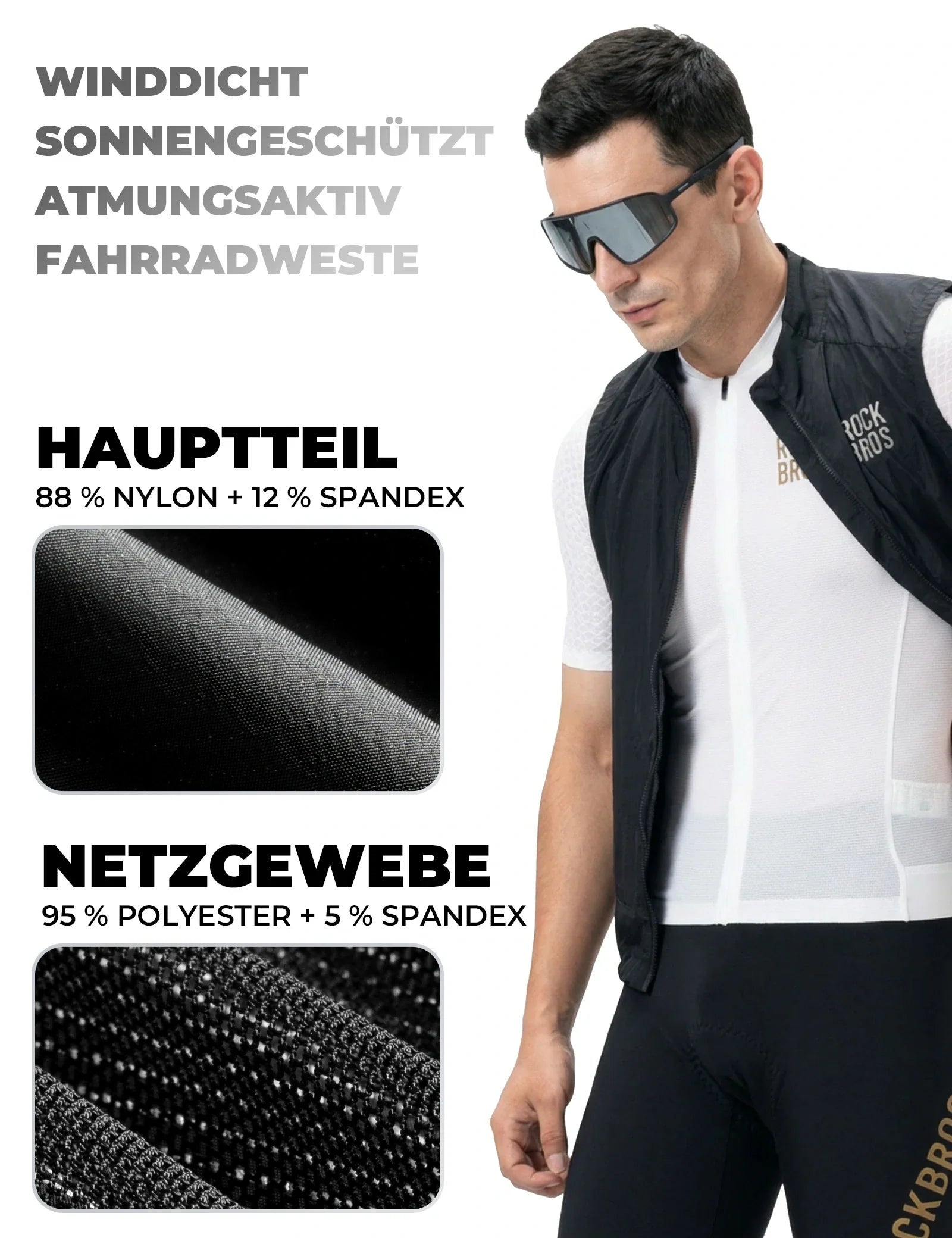 Fahrradweste Winddicht Leicht Atmungsaktiv Schnelltrocknend, Faltbar Radweste