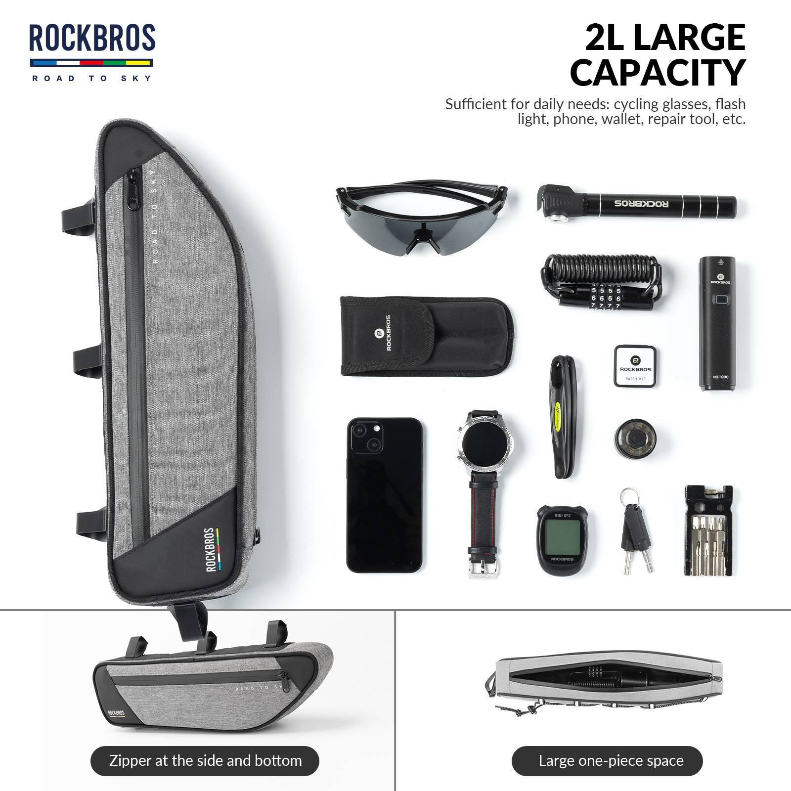 ROAD TO SKY Reflektierende Wasserdichte Fahrrad 2L Dreieckstasche