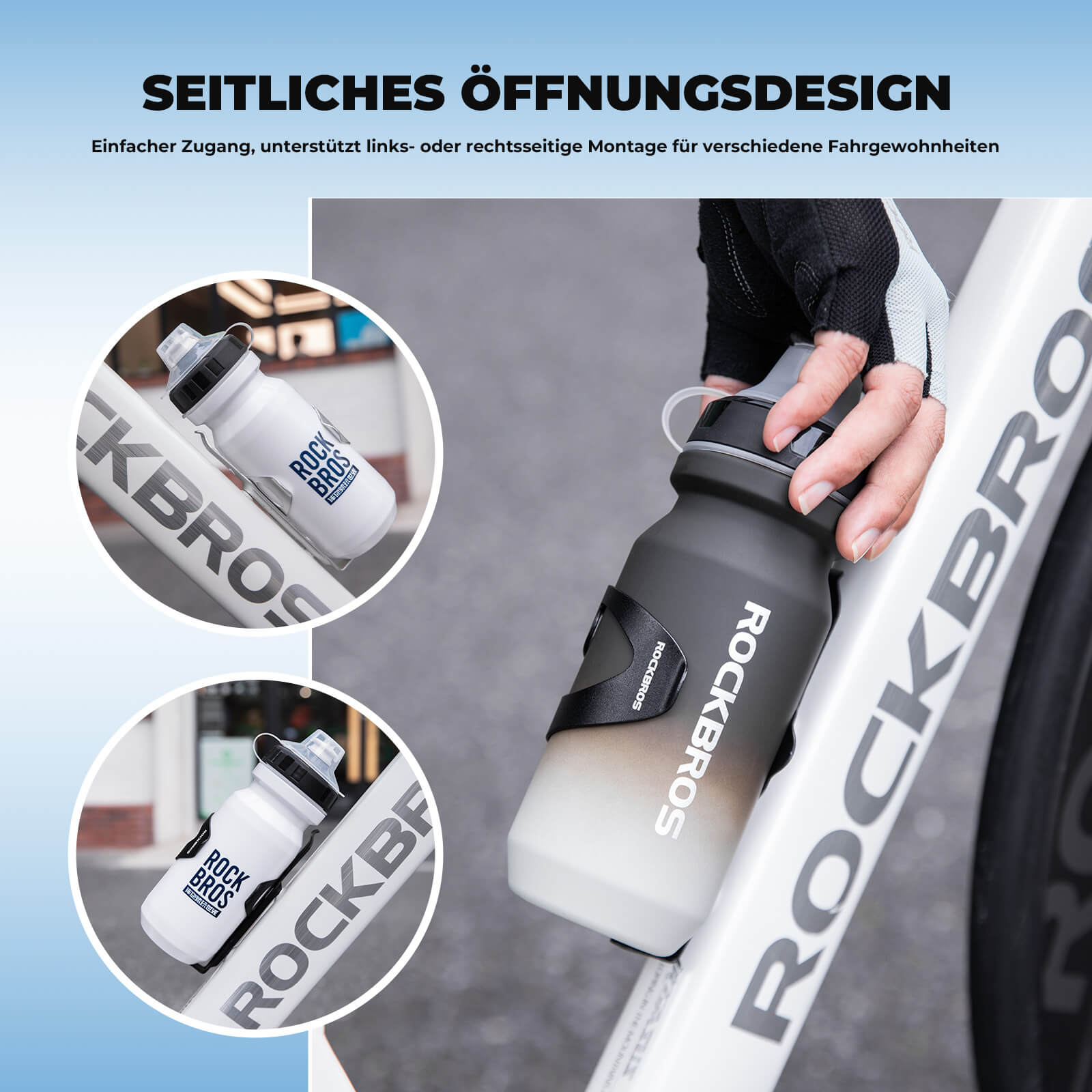 Praktische Seitenöffnung ermöglicht Flaschenentnahme von links oder rechts. Perfekt für wechselnde Fahrpositionen und schnelle Trinkpausen.