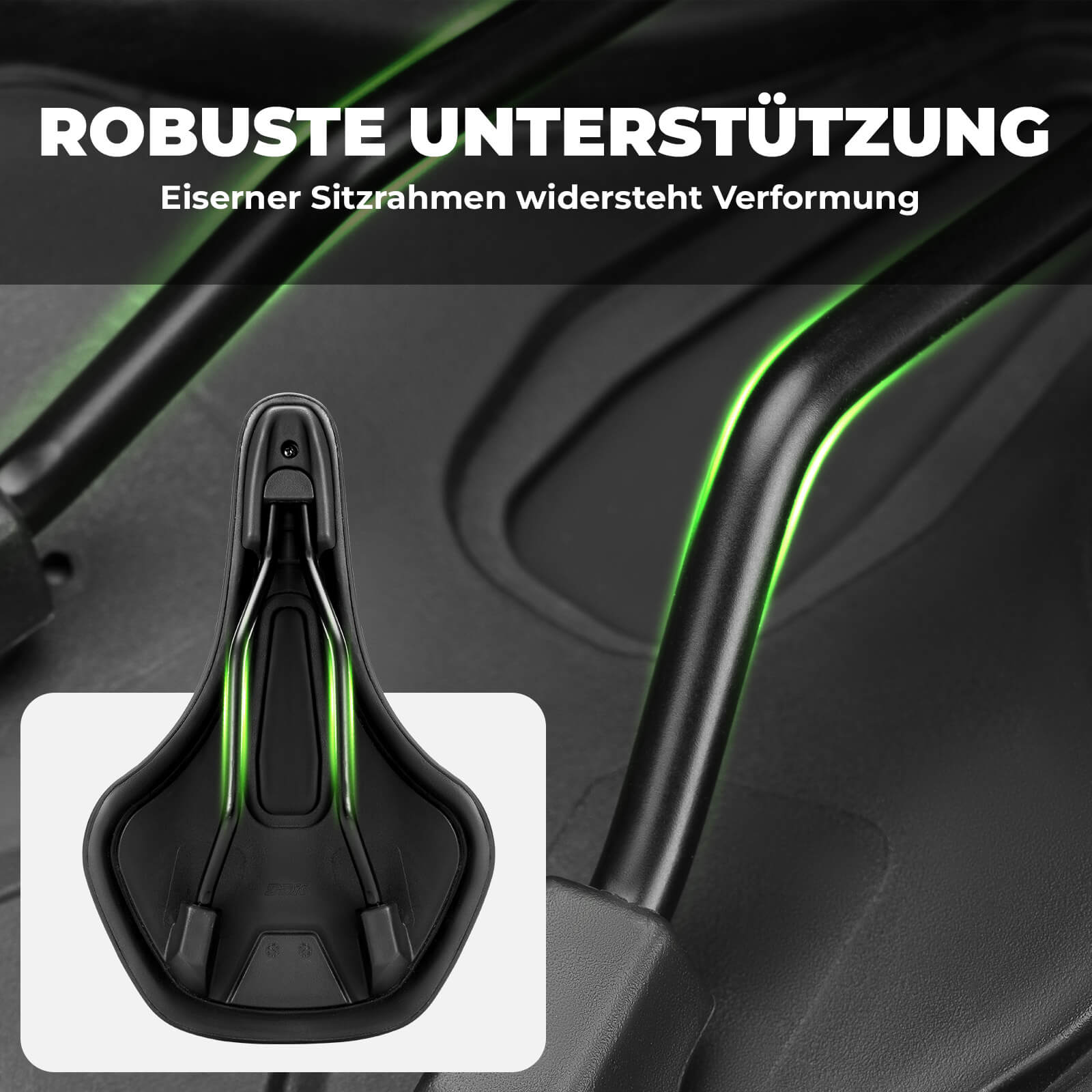 Hochfester Stahlrahmen widersteht Verformung und bietet zuverlässige Unterstützung. Ideal für anspruchsvolle Trails und unebenes Gelände.