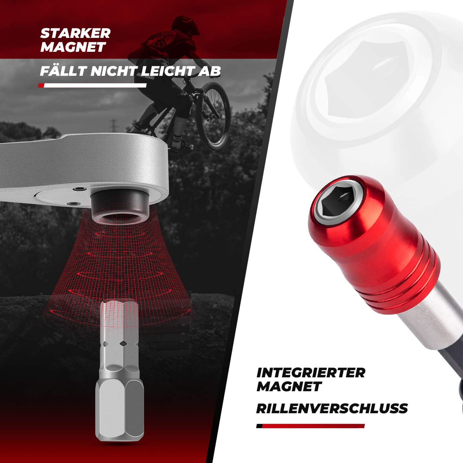 Ratsche mit 72 Zähnen, die Kombination von Rad und Zähnen ist enger, nur 5 Grad für eine Umdrehung, spart Zeit und Mühe. Bidirektionale Einstellung im Uhrzeigersinn und gegen den Uhrzeigersinn. Der Drehmomentschlüssel ist mit einem Schnellwechselknopf ausgestattet, der das Einsetzen und Entfernen der Bits erleichtert.