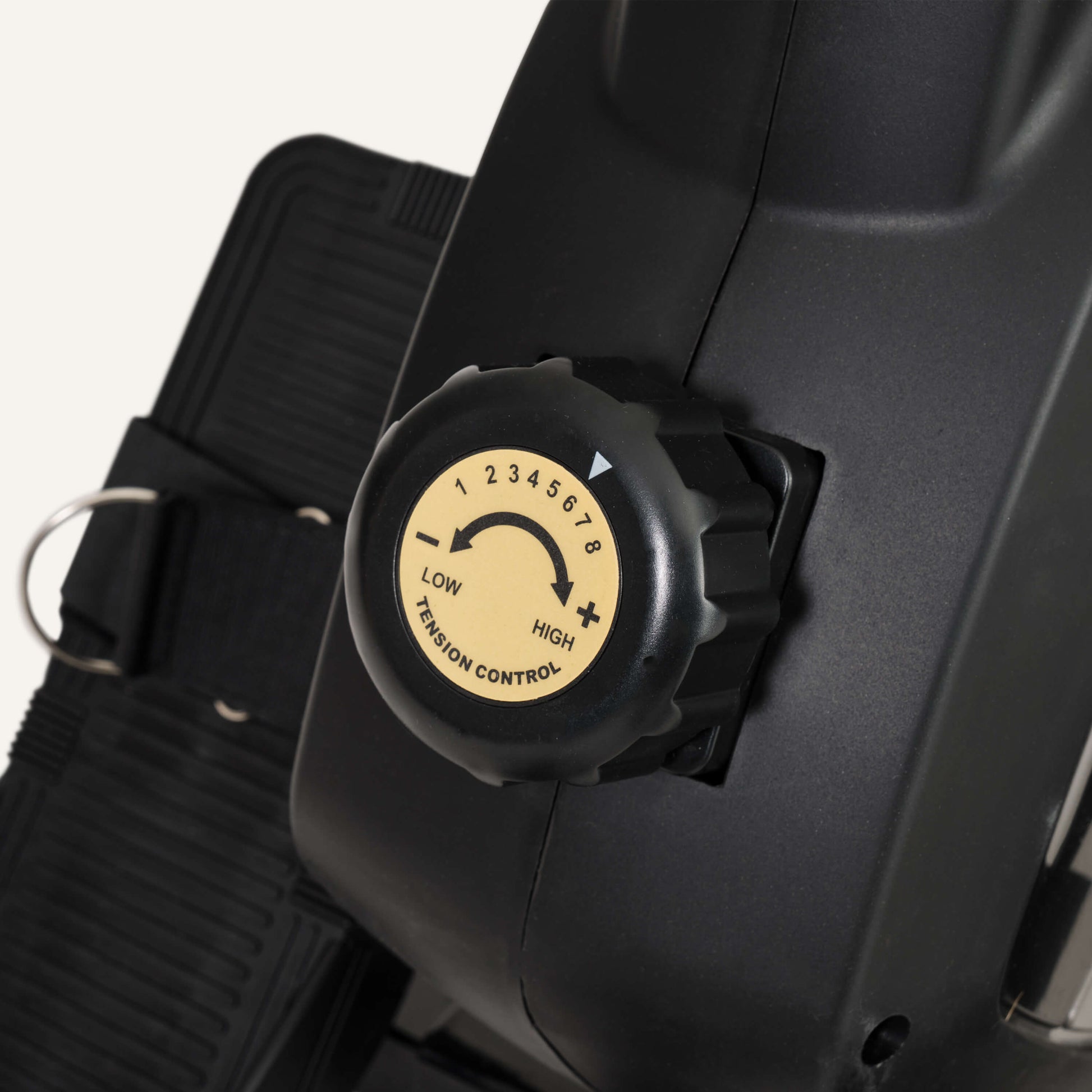 - Große und rutschfeste Trittfläche mit verstellbaren Sicherheitsriemen
