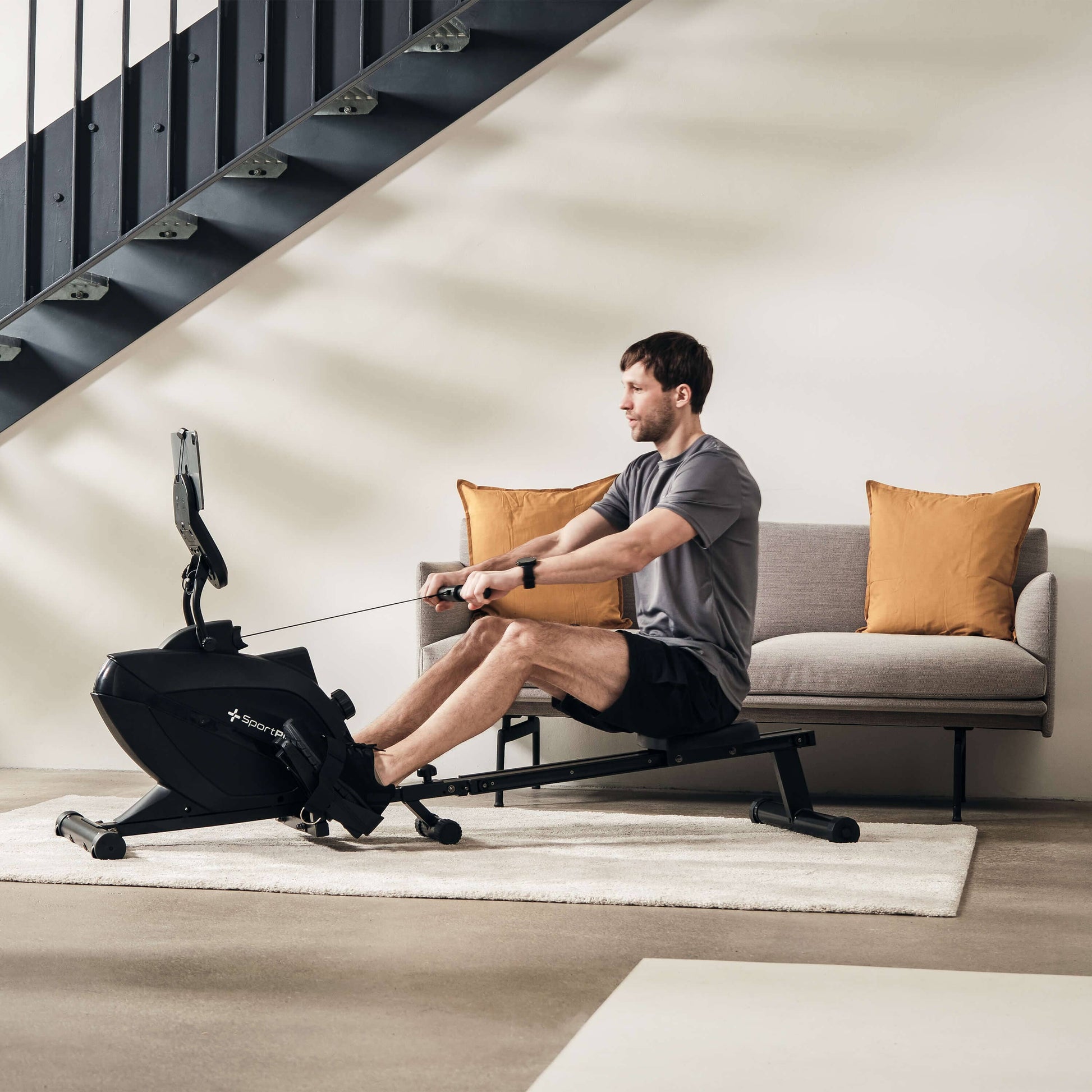 - 8 kg Schwungmasse für einen dynamischen Ruderzug