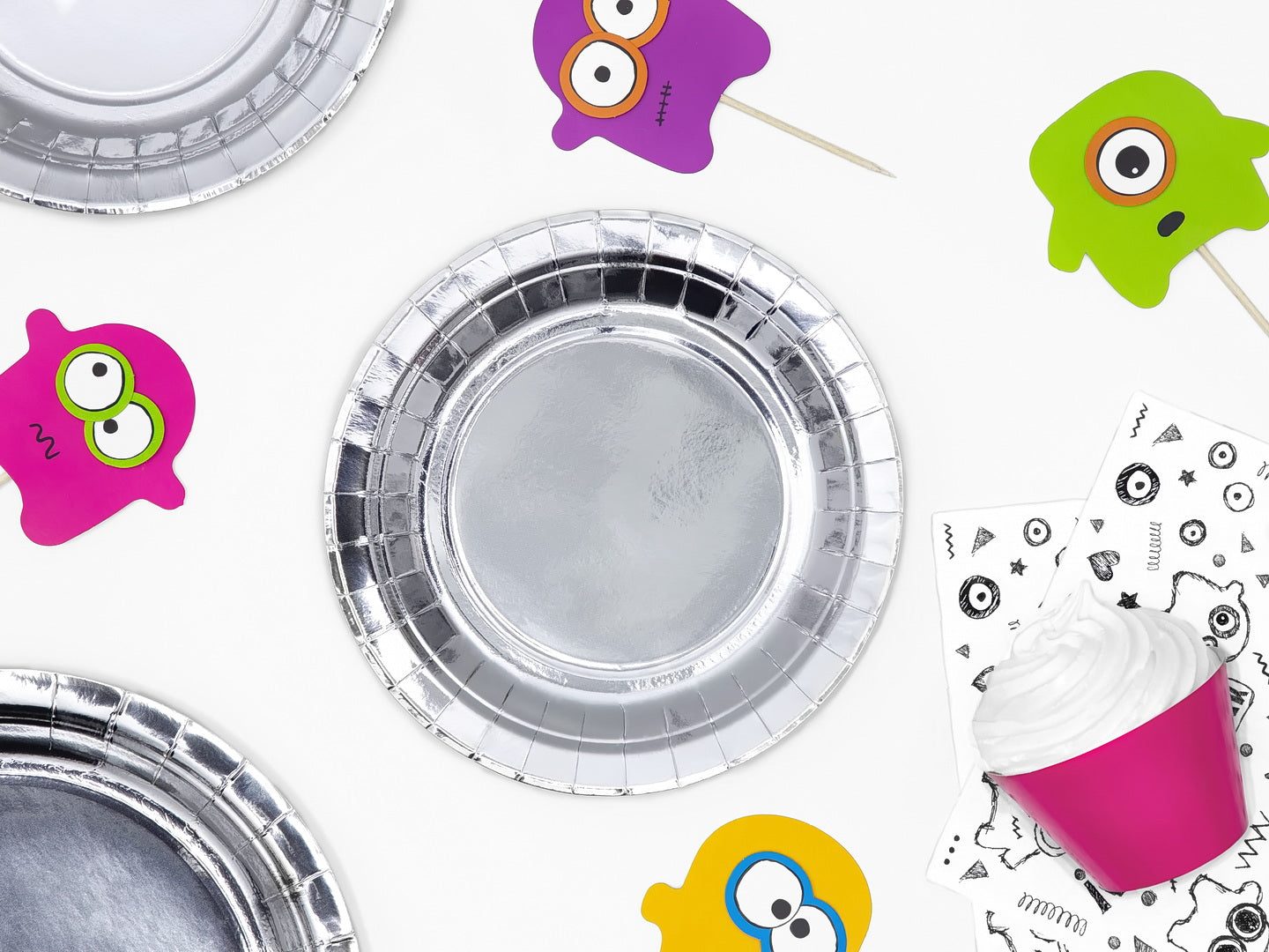 Runde Pappteller, silberfarben, Durchmesser ca. 23 cm (1 VPE / 6 Stk.)