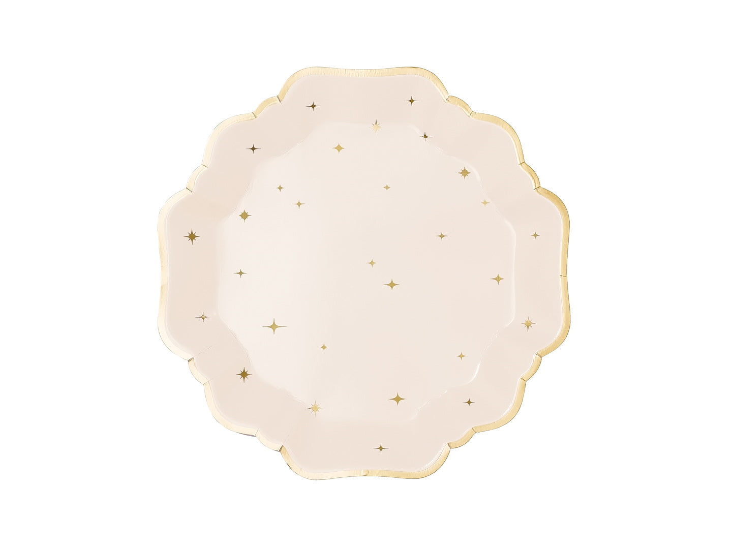 Pappteller Sterne in Beige mit goldenen Sternen, Durchmesser ca. 21 cm (1 VPE / 6 Stk.)