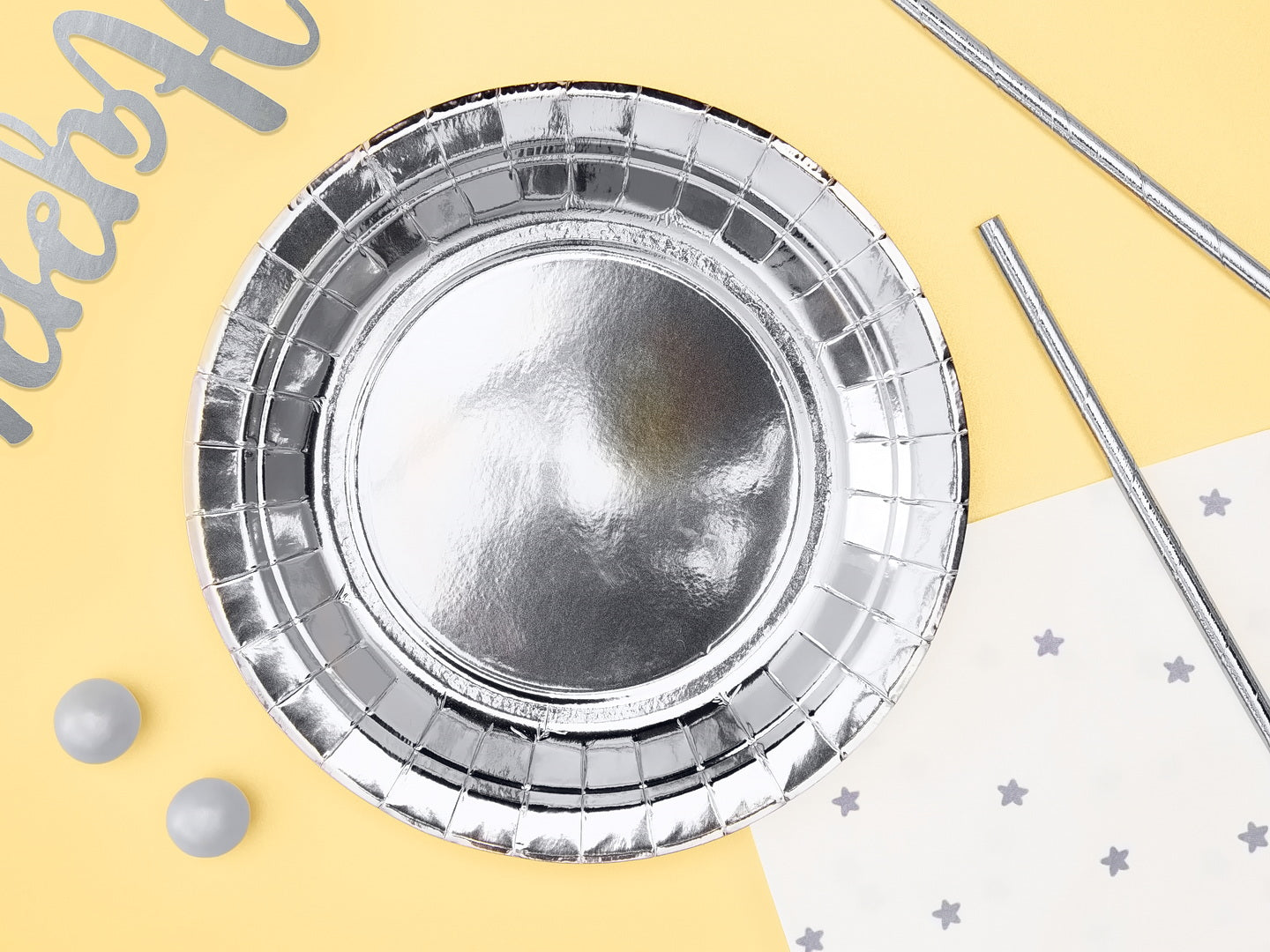 Runde Pappteller, silberfarben, Durchmesser ca. 18 cm (1 VPE / 6 Stk.)
